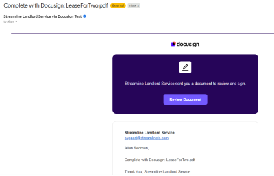 The StreamlineLS platform now allows you to send DocuSign documents to tenants or prospects so that they can sign, using eSignatures.