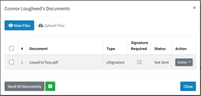 Sending an eSignature document one or more tenants follows the same process as to a prospect, only we send it from the Rental Agreement Documents page instead.