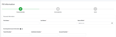 You will be prompted to enter in some information. The personal application is shorter, with just name and address. Business applications have a few more fields, like the business name, operating name, and business number from the CRA.