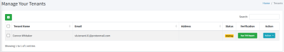 At this point, a tenant has been created, and an email has been sent to them to confirm their email address and create an account on the system. They may confirm or decline this invitation if they wish. Once they have confirmed their email address, their status will change to Connected.